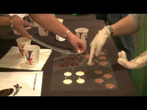 Participants put on aprons and pipe their names in molten chocolate on chefs hats.